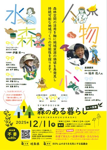 令和6年度「ディスカバー農山漁村の宝」ビジネス・イノベーション部門に選定された八百津町の「80%山のまちを元気にする協議会」の取り組みをモデルケースに、森林空間の活用や地域資源の価値を再発見し、持続可能な地域づくりの可能性を探ることを目的とした体験型シンポジウムです。