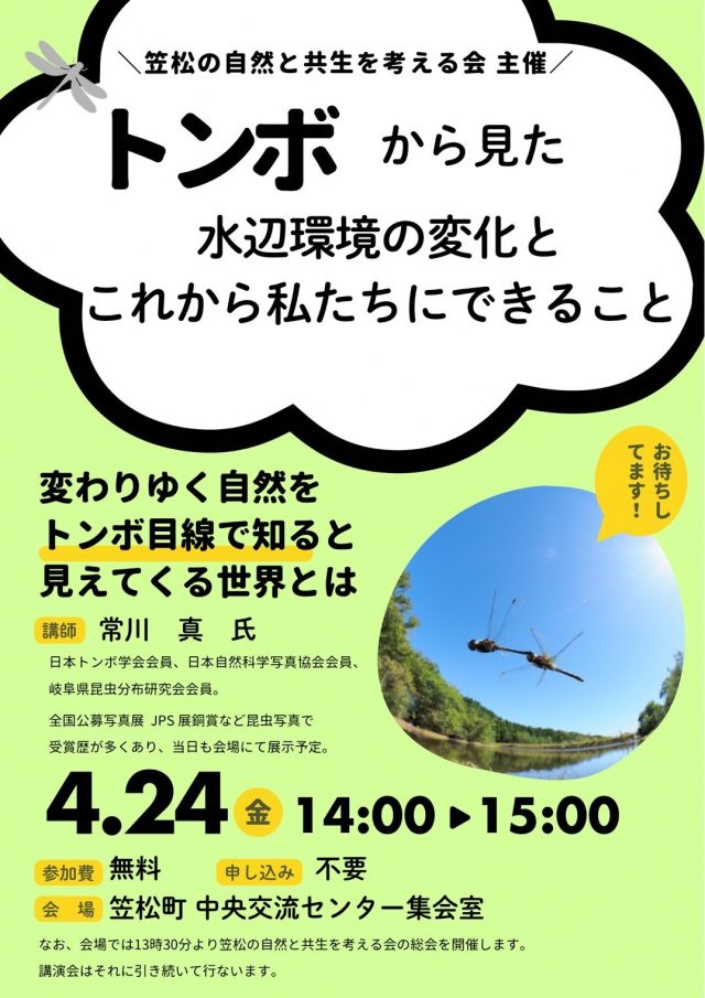 2026.04.07 ☆新規プログラムを掲載しました。☆ トンボから見た水辺環境の変化とこれから私たちにできること https://gifu-kankyo.pref.gifu.lg.jp/program/category/nature/p50718/