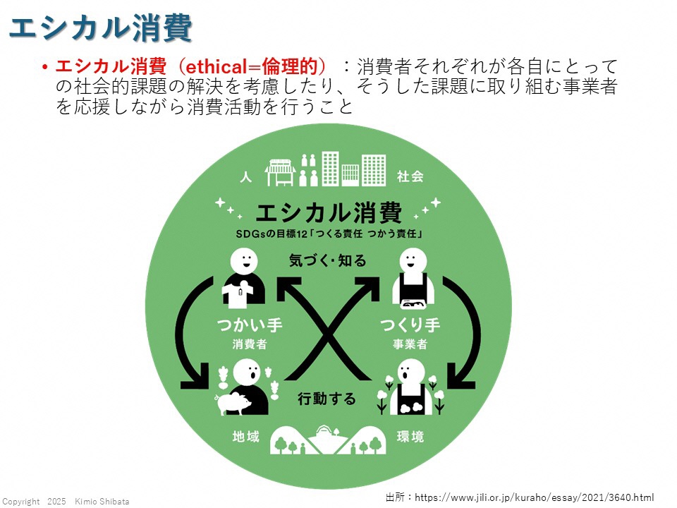 このように、値段や便利さだけでなく、環境・人権・地域社会への配慮を考えて商品やサービスを選ぶ行動を「エシカル消費」と呼びます。